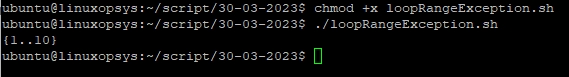 Using the increment or the decrement factor, we are able to make the loop iterate over a particular set of numbers in the range. If that factor is set to 1, we will achieve the same result as we did earlier. This approach can’t still be applied to variables as brace expansion will happen before the parameters could expand.